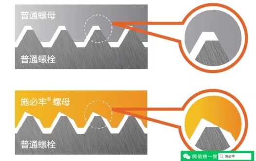 使用施必牢(30度楔形螺纹)防松螺母后,无需热乎辅助锁紧原件,如弹簧垫圈,止动垫片等。